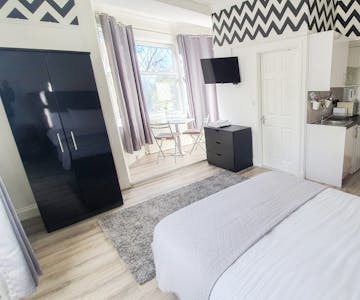 A lovely spacious double bedroom studio apartment with kitchenette and en-suite.